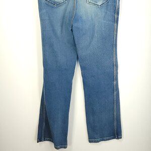 Measures approximately when laid flat: 15" across front waist, 30" inseam, & 41 1/2 out seam
