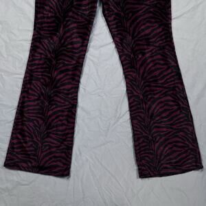 Vintage Serious LA Fuzzy Velvet Zebra Print Flare Pants Los Angeles Clothing Y2K