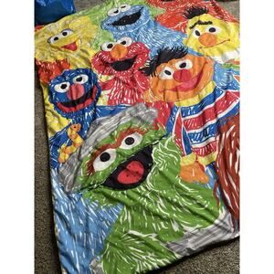 Vintage Sesame Street Character Toddler Quilt Blanket 80s 90s 55in X 39.5in