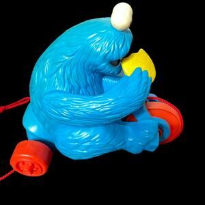 Vintage Sesame Street Cookie Monster Pull Along Toy 1982 Muppets Child Toddler