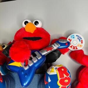 Up for sale is a lot of vintage Sesame Street plush dolls from the 1990s by Tyco Preschool Toys and Fisher-Price / Mattel. Includes multiple versions of Elmo and Ernie, with outfits such as striped pajamas, denim overalls, and Rock & Roll Elmo with guitar.