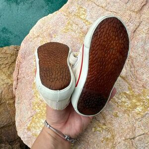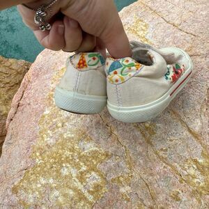 These little canvas Elmo sneakers radiate that carefree playdate vibe—Velcro straps that shout “HAVE FUN”, colorful inner lining sprinkled with confetti-like patterns, and Elmo dancing with streamers. It’s very retro preschool playground chic: the kind of shoe you’d wear to Chuck E. Cheese, daycare, or a birthday bash at McDonald’s PlayPlace. Pure 90s/early-2000s childhood energy—cheerful, goofy, and made to get dirty while still looking adorable.