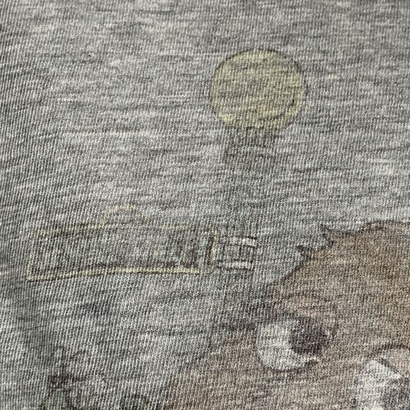 The Vintage Sesame Street Graphic T-Shirt in gray features a "All My Homies Are From The Street" design with a graphic print of Cookie Monster. This short sleeve shirt has a crew neckline and is made of a blend of polyester and cotton. The regular fit shirt is machine washable and perfect for wearing during the summer, fall, and spring seasons. With its nostalgic vibe and timeless appeal, this graphic tee from the 1990s is a must-have for any Sesame Street fan. Unisex