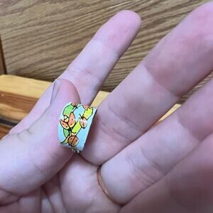 Vintage set of beautiful 1970's ladybug print wide metal hoop earrings, classic 1970's art deco style.