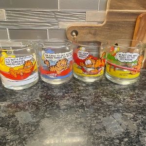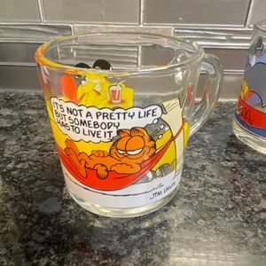 Vintage Set 1978 Garfield & Odie McDonald's Glass Coffee Mug/Glass