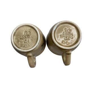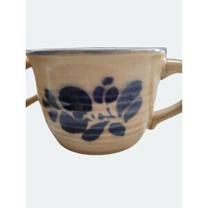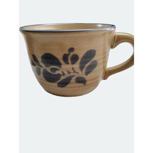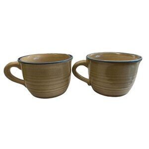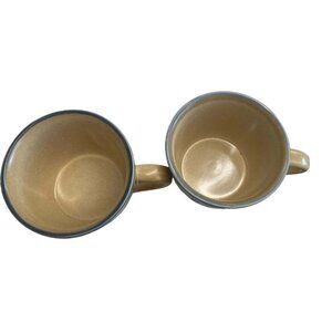 Elevate your coffee experience with this charming vintage set of two Pfaltzgraff Folk Art tan and blue coffee cups. Crafted in the USA from durable stoneware, these mugs are perfect for any coffee lover.