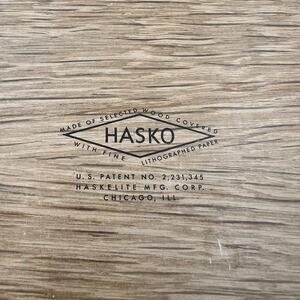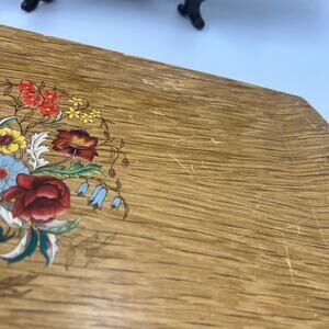 Vintage set of three Hasko faux wood ornamental floral / roses lithograph paper on wood serving trays decorative. Trays show some light signs of wear as pictured, still in good overall condition.