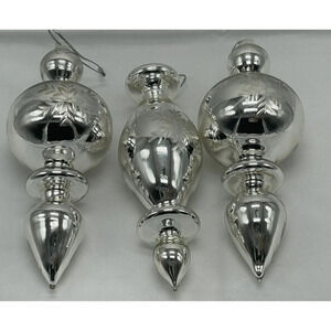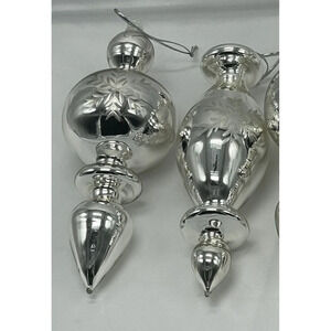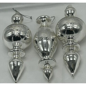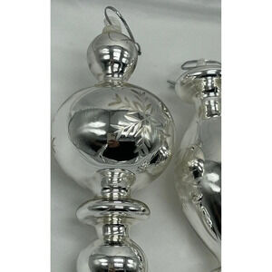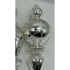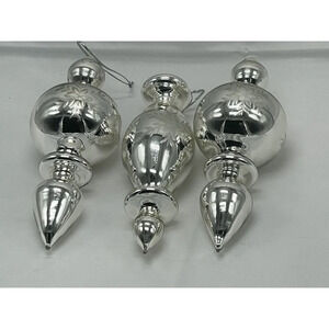 Vintage Set 3 Large Blown Glass Silver Finial Ornaments 6"