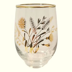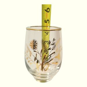 Vintage Set 4 Libbey Roly Poly Golden Wheat & Flower Drinking Glasses Tumblers