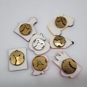 Vintage Set 7 School Teacher Apple Button Covers Books Pencil Ruler ABC Slate