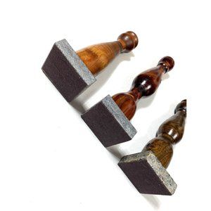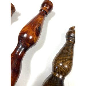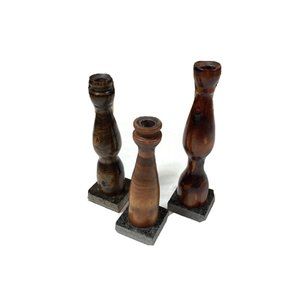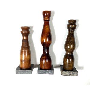 Vintage Set Candle Holders Wood Grain Pillars Marble Bases MCM Retro Decor