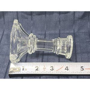 Vintage Set Of 2 Pressed Glass Clear Candle Stick Holders Candle Holders in good preowned condition no chips or cracks seen. Would make a great addition to any collection. Measurements in pics. Comes as pictured.