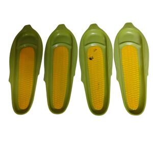 🌽Vintage Set Of 4 Corn on the Cob Trays Holders Nostalgic Novelty Picnic Dining