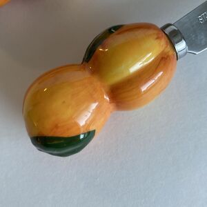 Vintage Set Of 4 Fruit Themed Ceramic Handle Cheese Appetizer Knives