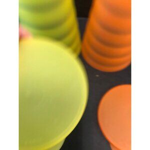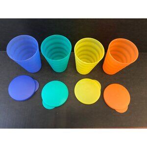 Vintage Set Of 4 Tupperware Ribbed Tumblers & Lids NWOT Blue Turquoise Yellow Orange Holds 500ML