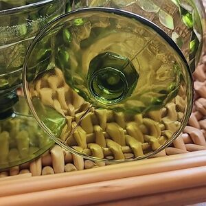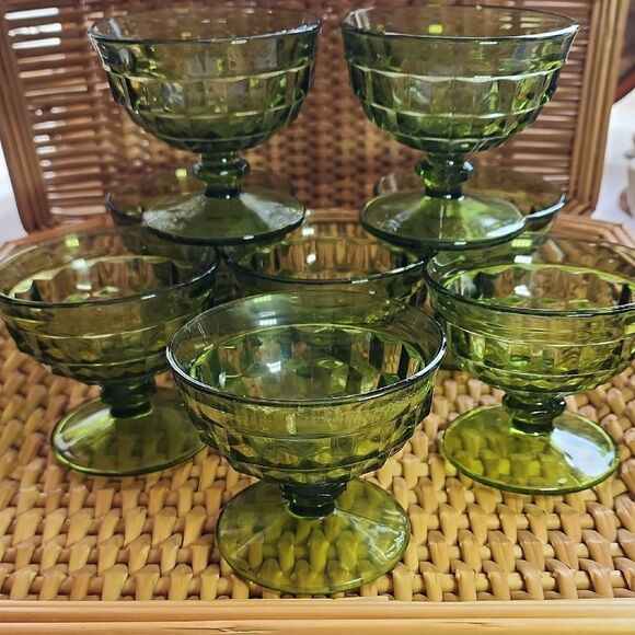 Set of 8 Vintage Indiana Glass Dessert Compotes in Avocado green