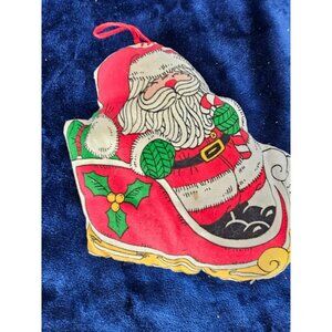 Vintage Set Of Two Santa Clause Felt Christmas Ornaments