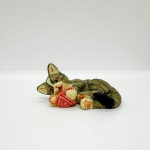 Vintage Set Resin Tabby Cats Playing Yarn Kittens 90s