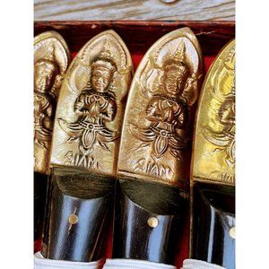Vintage Set Siam Demitasse Spoons Brass/ Horn /Goddess