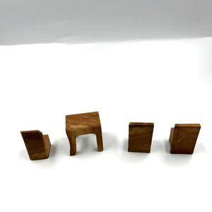 Vintage Set Wooden Hand Made Miniature Doll House Table 3 Chairs Primitive