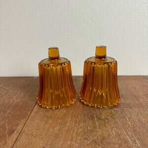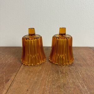 Vintage Set of 2 Amber Colored Striated Peg Votive Candle Holders