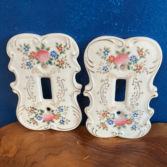 Vintage Set of 2 Arnart Porcelain Hand Painted Floral Single Light Switch Cover
