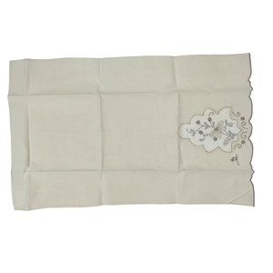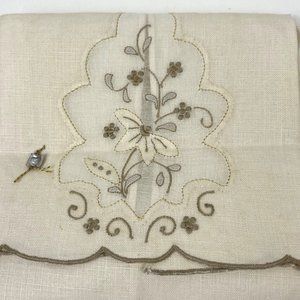 Vintage Set of 2 Beige Floral Embroidered Tea Towels. Very nice condition.