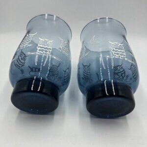 Vintage Set of 2 Blue Owl Drinking Glasses Tumblers Weighted Bottom