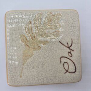 Crafted ceramic coasters featuring birch and oak leaf designs, ideal for protecting surfaces and adding a natural touch to your décor.Very Good condition