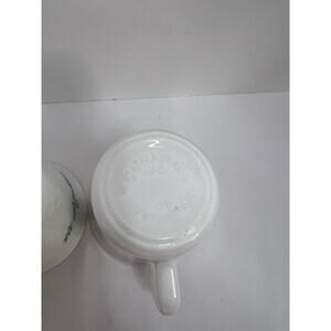 This vintage set includes 2 CorningWare coffee mugs featuring a rare floral pattern in white. Made using a fused glass production technique, these coffee cups are suitable for all occasions.