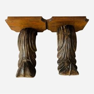Vintage Set of 2 Drapery Sconce Pair of Rustic Brown Candle Holders Wall Decor Carved Solid Wood Floating Wall Shelf Sconces