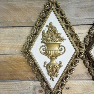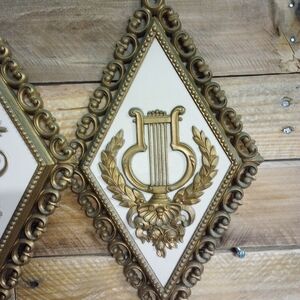Vintage Set of 2 Gold HOMCO Home Interiors Wall Hangings Academia Moody