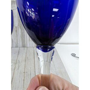 Vintage Set of 2 Hand Blown Cobalt Blue With Clear Stem Wine Glasses 10"