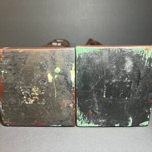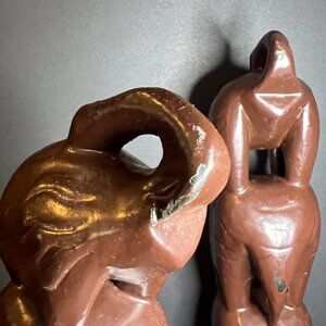 Selling a Vintage Set of 2 Hand-Carved and Hand-Painted Brown Wooden Elephant Totem Towers. They measure 14.5" and 15" tall (one tower is slightly taller than the other). They do have some wear and paint chips (shown in the pictures). They could benefit from a light paint cover-up. They're in otherwise good condition!