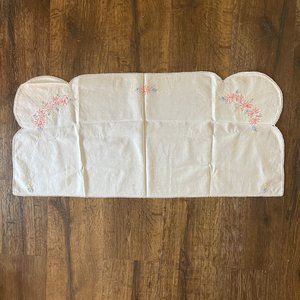 Vintage Set of 2 Hand-Embroidered Dresser Scarves Crochet Edge Pink Flowers