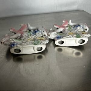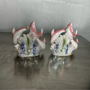 Vintage Set of 2 Iridescent Dolphins At Play Pink Floral Beachy Glass Figurines