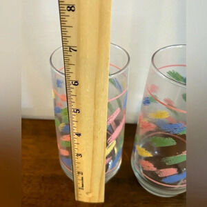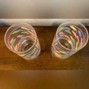 Vintage Set of 2 Libbey Pastel Brushstroke Pattern 16 oz Glasses 1980s In EUC