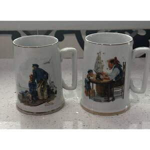 Vintage Set of 2 Norman Rockwell Coffee Mug Tea Cup Museum Collections
