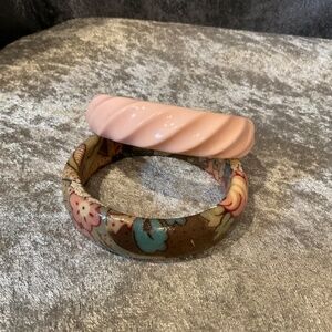 Vintage Set of 2 Pink and Floral Bangle Bracelets