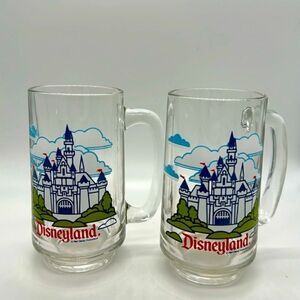 Vintage Set of 2 Disneyland Glass Cinderella Castle Mugs