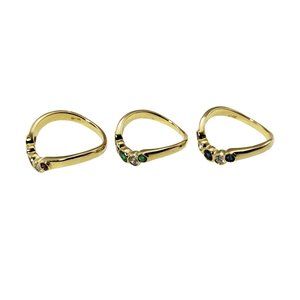 Vintage Set of 3 14K Yellow Gold Ruby/Emerald/Sapphire and Diamond Ring #12027