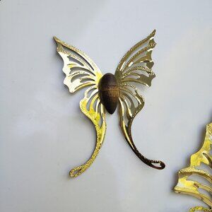 Vintage Set of 3 Brass Butterflies with Wood Bodies Home Interiors Wall Hanging