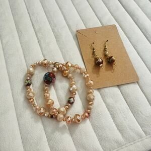 Vintage Set of 3 CLOISONNE Beaded Stretchy Bracelet and Dangle Earrings