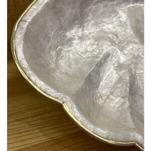 Vintage Set of 3 Capiz Shell Nesting Bowls Trinket Trays Gold Trim Pearlescent