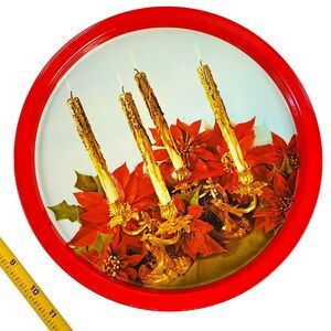 Vintage Set of 3 Christmas Tin Trays Atlantic Can Co Style Round Serving MCM