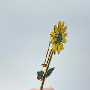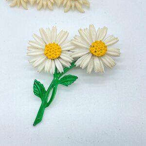 This charming trio of vintage brooches features floral designs with enamel and plastic materials, showcasing daisies and sunflowers. Add timeless elegance to your collection.