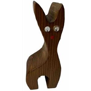 Vintage hand-crafted deer reindeer wood trio with googly eyes! All in very good condition.