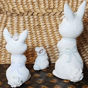 Vintage Set of 3 Hand Painted Ceramic Bunny Rabbit Family Figurines - Easter