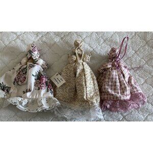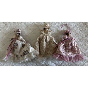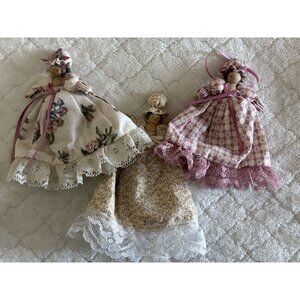 Vintage Set of 3 Handmade Wooden Clothespin Cloth Dolls Handpainted Faces