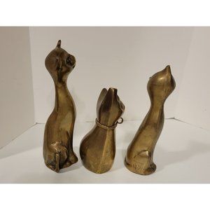 Vintage Set of 3 Whimsical Hollow MCM Brass Cat Figurines Statues